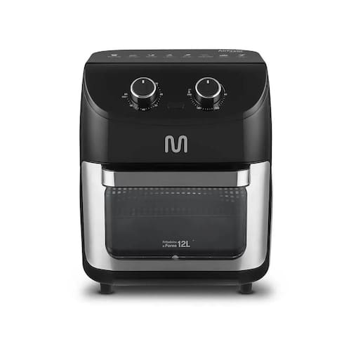 Conteúdo da Embalagem: 1 Air Fryer Forno 12L, 1 forma antiaderente para bolo, 2 bandejas de inox, 1 bandeja coletora de gordura e 1 Manual de Instruções