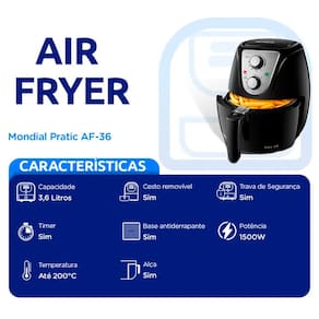 Acrescente praticidade e saúde à sua rotina diária com a Air Fryer Mondial AF-36-BI.