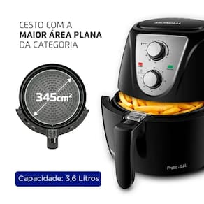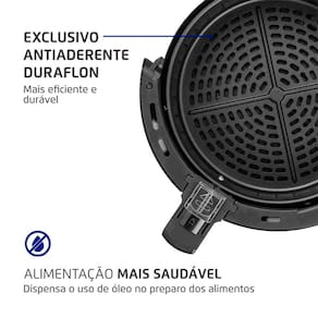 A Air Fryer possui capacidade de 3,6 litros e o cesto é revestido com antiaderente Duraflon, e os alimentos não grudam no fundo. Saiba mais sobre a AF-36-BI: