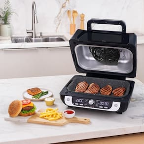 Funções: Assar, Gratinar, Forno, Desidratar, Cozimento Lento, Chapa, Ensopado, Vapor e Manter Aquecido.