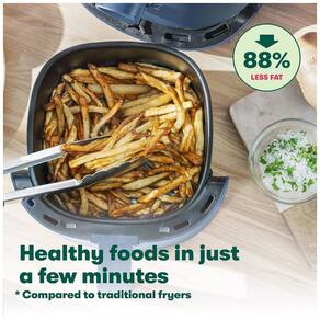 DELÍCIAS SAUDÁVEIS: Desfrute de refeições sem culpa com 88% menos gordura e 65% menos calorias do que nos restaurantes de fast food típicos. A cesta antiaderente e a bandeja crisp, livres de PFOA, são removíveis e compatíveis com lava-louças, tornando a limpeza do mini forno uma tarefa fácil.