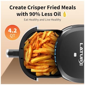 Fritadeira Elétrica AirFryer 4.2L com painel de controle digital, temperatura ajustável e tecnologia de circulação de ar quente 360.Porta-fio