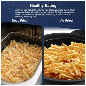 ALIMENTAÇÃO SAUDÁVEL: Cozinhe com 85% menos óleo para refeições sem gordura, mantendo o mesmo sabor e acabamento crocante com menos calorias. Basta adicionar os alimentos à panela, escolher a configuração de calor para Inferior ou Superior e Inferior juntos, ajustar a temperatura e o tempo, e começar a cozinhar.