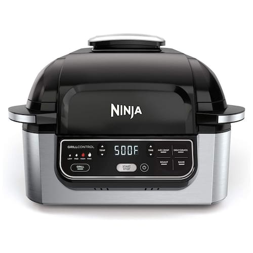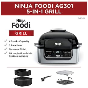 Fritadeira Elétrica Airfryer com Grill Ninja Foodi, 5 em 1 programável, tecnologia de grelhamento ciclônico, potência de 1760W, cesto crocante de 4 litros, panela de cozimento de 6 litros, grelha antiaderente, fácil de limpar.Porta-fio