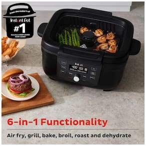 Fritadeira Elétrica AirFryer e Grill 6 em 1 Instant Pot com painel digital, funções de assar, reaquecer, tostar e desidratar, tecnologia EvenCrisp e OdorErase, temperatura máxima de 200°C e cesto removível.Porta-fio