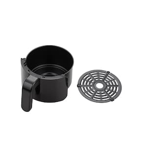 Fritadeira Elétrica AirFryer HQ 2,8L com potência de 800W. Controle mecânico com ajuste de tempo (0 a 60 minutos) e temperatura (até 200°C). Cesto e recipiente com revestimento antiaderente. Corpo em plástico resistente ao calor.Porta-fio