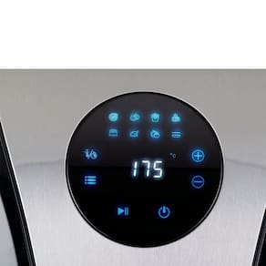 Cor: Preto / Inox Material: Metal e Plástico Capacidade: 5L Potência: 1500W Ajuste de Temperatura: 80 a 200C Base Antiderrapante: Sim Desligamento Automático: Sim Dimensões AxLxP (mm): 335x290x345 Funcionamento: Elétrico LED Indicador de Funcionamento: Sim Nome complemento: Painel digital com 8 funções predefinidas Referência: 063801081 (127V); 063802081 (220V) Temperatura Máxima: 200C Timer: 0-60min Voltagem: 127V; 220VPorta-fio