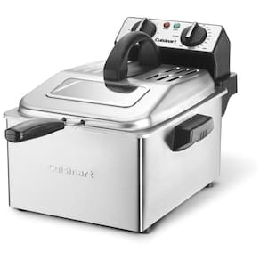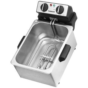 Fritadeira elétrica Cuisinart CDF-200P1 com capacidade de 4 litros, 1800W, aquecimento rápido, cesto de aço inoxidável com alça de toque frio e recipiente de óleo removível com bico.Porta-fio