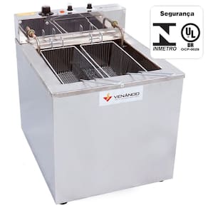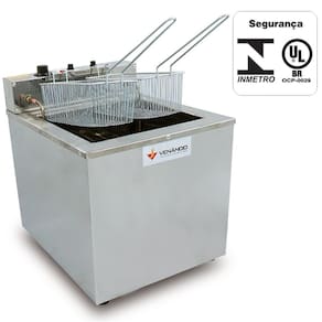 Equipado com resistência e 3 termostatos, sendo 1 externo para controle de Temperatura de 80 C à 180C e 2 internos, que servem de limitador de temperatura; Corpo externo em aço inox 430; Cuba interna (depósito de água e óleo) em aço inox 304; Modelo em 220v, monofásico; Fabricado com dois cestos; Pés com regulagem de altura; Não acompanha tomada. Deve ser instalado com disjuntor; Garantia 3 meses legal mais 3 meses pela fábrica.Porta-fio