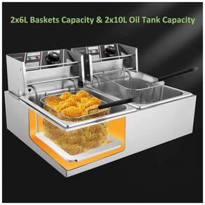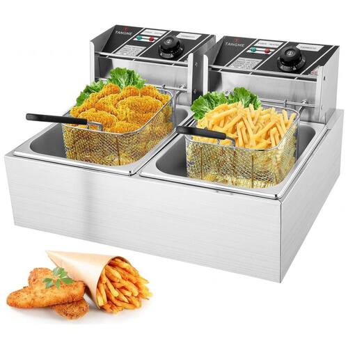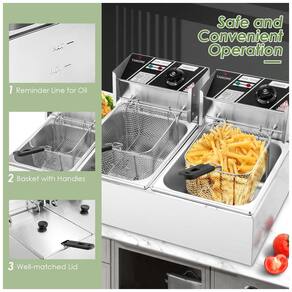 Desempenho Poderoso e Capacidade Adequada: Equipada com um elemento de aquecimento poderoso em cada tanque, a Fritadeira TANGME garante frituras rápidas e manutenção da temperatura do óleo. Com uma capacidade de cestas de 12 litros, é perfeita para uso comercial, atendendo às necessidades de restaurantes e lanchonetes.
