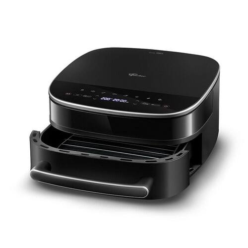 Fritadeira Elétrica Fischer Air Fryer Dual Grill com 6L de capacidade. Possui dupla resistência (superior e inferior) para um cozimento uniforme. Conta com 9 receitas pré-programadas, controle Touch Screen, ajuste de temperatura de 40 a 230°C e timer de até 60 minutos com desligamento automático. Funções incluem Reaquecer, Desidratar, Pizza e Gourmet. Acompanha suporte interno removível e janela para visualização.Porta-fio
