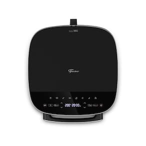 Fritadeira Elétrica Fischer Air Fryer Dual Grill com 6L de capacidade. Possui dupla resistência (superior e inferior) para um cozimento uniforme. Conta com 9 receitas pré-programadas, controle Touch Screen, ajuste de temperatura de 40 a 230°C e timer de até 60 minutos com desligamento automático. Funções incluem Reaquecer, Desidratar, Pizza e Gourmet. Acompanha suporte interno removível e janela para visualização.Porta-fio