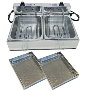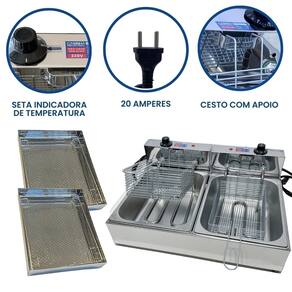 Fritadeira elétrica industrial com 2 cubas independentes de 5 litros cada, totalizando 10 litros. Fabricada em inox de alta qualidade. Termostato ajustável de 50°C a 300°C. Inclui 2 escorredores médios.Porta-fio