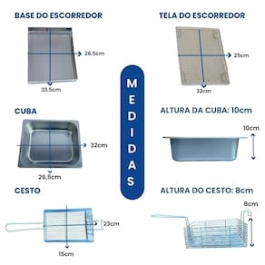 Fritadeira elétrica industrial com 2 cubas de 5 litros cada, sistema antichamas, escorredor médio. Termostato ajustável de 50°C a 300°C. Uso comercial e residencial.Porta-fio