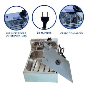Cuba 5 Litros + Tampa em inox, Termostato Ajustável de 50°C a 300°C, Uso Comercial e Residencial.Cesto removível