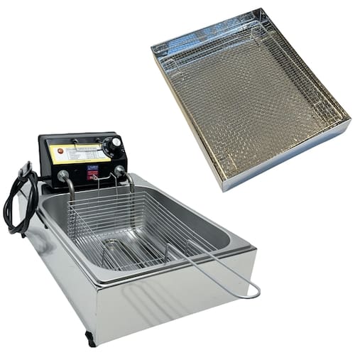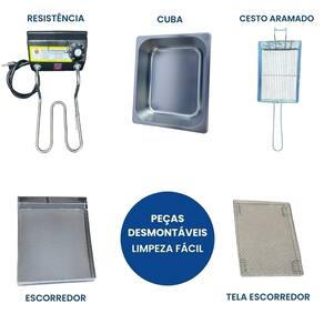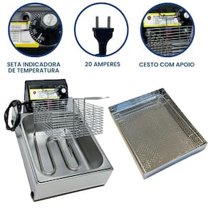 Cuba 5 Litros + Escorredor M. Sistema de aquecimento com termostato ajustável até 300°C. Sistema antichamas. Uso Comercial e Residencial.Porta-fio