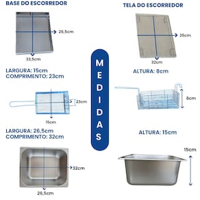 Cuba Antichamas Modelo Compacto 7 Litros + Escorredor M. Sistema de aquecimento com termostato ajustável até 300°C. Sistema antichamas para maior segurança. Uso comercial e residencial.Cesto removível