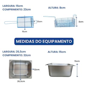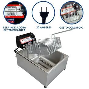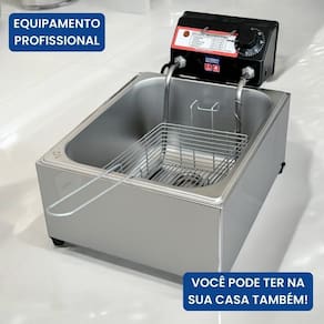 Cuba Antichamas Modelo Compacto 7 Litros. Design robusto e funcional. Fácil de limpar e resistente. Sistema antichamas para operação segura. Termostato ajustável de 50°C a 300°C. Uso comercial e residencial.Cesto removível