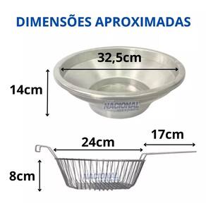 - Cesto em arame industrial estanhado para fritura com 24 Cm de Diâmetro. apoio 4,5cm e 8 Cm de Profundidade