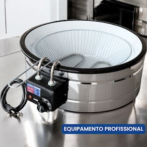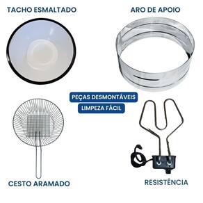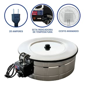 Tacho redondo esmaltado de 10 Litros com tampa. Termostato ajustável de 50°C a 300°C. Uso comercial e residencial.Porta-fio
