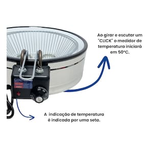 Tacho Esmaltado 10L com Escorredor Médio e Tampa. Termostato regulável de 50°C a 300°C. Cabeçote removível para facilitar a limpeza. Alça para escorrer o óleo. Cesto aramado estanhado.Porta-fio