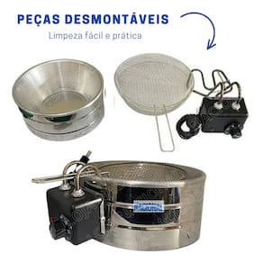 A fritadeira TPlus – 4L é perfeita para o uso industrial ou doméstico. É compacta, ou seja, não ocupa muito espaço em seu comércio ou cozinha. Sendo fácil de manusear e tocar de lugar.O modelo TPlus possui 1 cuba com a capacidade total de até 4 litros, sendo óleo + alimento. Possui cesto e cabeçote removíveis que facilitam sua limpeza e conservação.Fabricada com o termostato mais moderno e confiável do mercado elétrico, fritadeira atinge a temperatura esperada em aproximadamente 8 minutos (dependendo do ambiente) e seu termostato controla a temperatura e protege sua fritadeira.Possui resistência em aço inox e blindada fazendo com que esquente somente a parte baixa da resistência, evitando choques e queimaduras.CARACTERÍSTICAS GERAIS- Capacidade Total da Cuba: 4 Litros- Capacidade de óleo: 2,5 a 3 Litros- Termostato de 50°C a 300°C (com regulagem)- Material: Aço Inoxidável- Voltagens 110v e 220v (NÃO É BIVOLT) – Escolher a voltagem no anúncio- Lâmpada piloto de aquecimento (Indicativo de Acionamento Automático)- Cuba gastronômica- Cesto de FrituraInstruções Rápidas:- O controle de temperatura segue a linha da lâmpada de aquecimento. Na dúvida de onde ligar, ouça o "Click".- A fritadeira está ligada quando o piloto acender (luz vermelha);- Nunca ligar a fritadeira sem óleo;- Cuidado com a temperatura acima de 200 graus, pode ocorrer queima do óleo;- Para testar a quantidade de óleo, faça a MEDIÇÃO COM ÁGUA e com a fritadeira DESLIGADA. Feito a medição da quantidade, retire a água e seque bem a cuba. JAMAIS LIGUE A FRITADEIRA COM ÁGUA E NEM MISTURE ÁGUA E ÓLEO;- Quando a temperatura indicada for atingida, o piloto se apaga e a fritadeira está pronta para ser usada;- A operação de imersão deve ser lenta para que evite que o óleo transborde;- Manter sempre 2 litros de óleo na cuba, isto é, repor quando o nível baixar. A frequência de troca do óleo depende da utilização.Informações técnicas:- 110V – 1.600 Watts- 220V – 1.600 Watts- Tomada: 10A- Medidas da Fritadeira.=> Cuba Altura:10,5 cm x Diâmetro Cima: 29 cm x Diâmetro base: 18,5 x P: 11,5 cm=> Base Altura: 12 cm x Diâmetro: 30 cm- Uso Comercial e Residencial- Não incluso tampaCONTEÚDO DA EMBALAGEM- 01 Base em aço inox - 01 cabeçote com resistência- 01 cesto aramado- 01 cuba- 01 Manual de instruçõesPERGUNTAS FREQUENTES:As partes são removíveis?- Sim, todas as partes (cabeçote, cesto, cuba) são removíveis.Quantos graus atinge?- de 50 a 300 grausQuantos litros de óleo?- de 2L a 3 Litros (sobrando espaço para os alimentos)Posso fritar quais tipos de alimentos?- Quaisquer tipos de alimentos. Salgados, pastel, kibe, mandioca, calabresa, batata, peixes dentre outros.O cesto é aramado?- SimA tomada é normal?- O plugue é o de 10APode ligar diretamente na tomada de casa?- Sim, qualquer tomada normal Quantos watts utiliza?- Utiliza 1600W nas duas voltagens, 127v e 220v