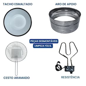 Tacho redondo esmaltado de 7 Litros com tampa. Termostato ajustável de 50°C a 300°C. Uso comercial e residencial.Porta-fio