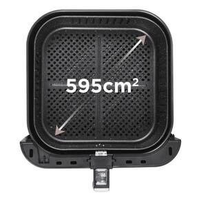 - A fritadeira conta com sensor de desligamento automático, que interrompe o funcionamento ao retirar a bandeja, garantindo mais segurança.