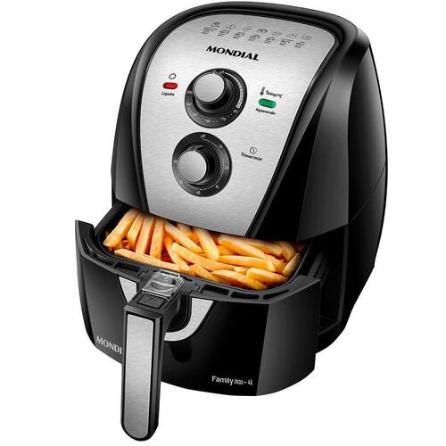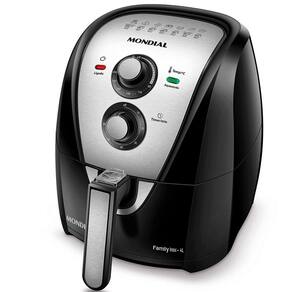Características: Marca: Mondial Modelo: AFN-40-FB Tipo: Fritadeira elétrica Capacidade: 4 litros Timer: Sim Temperatura: Até 200°C Cesto removível: Sim Trava de segurança: Sim Luz indicadora de funcionamento: Sim Alças: Sim