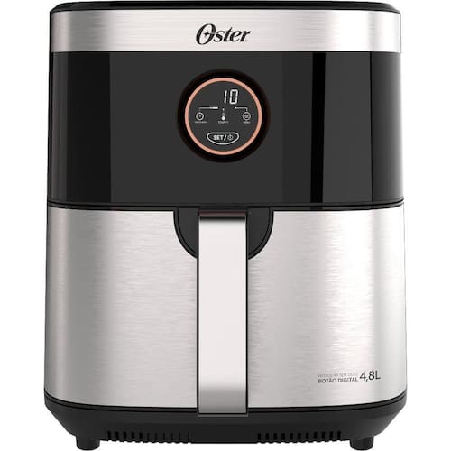 É prática, é bonita, é saudável. É para toda a família.Com a Nova Fritadeira Sem Óleo Black&Inox 4,8 litros da Oster, você pode preparar refeições saudáveis para toda a família, com muito mais praticidade. Ela vai levar mais beleza para a sua cozinha. E faz menos sujeira, pois não usa óleoCesto com 4,8L de capacidadePrepare refeições para toda a família.Painel FUNCIONAL8 funções pré-programadas, variações de temperatura de 40ºC a 200ºC e função desidratar.Design exclusivo em inoxBeleza e sofisticação que combinam com todos os ambientes.1500 Watts DE POTÊNCIAPreparo mais rápido e alimentos mais crocantes.Modelo: OFRT660-127Tensão: 127V / 220VPotência: 1500WConsumo: 1,5 kW/hDimensões: 285 x 344 x 400 mmPeso: 5,6 KgContém: 1 fritadeira