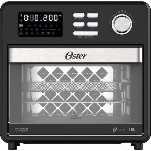 Fritadeira Elétrica Oster Forno Fryer 220V 15L - OFOR160Apresentamos o Forno Fryer Multifunções Compact da renomada marca Oster, um verdadeiro 2 em 1 que revoluciona a forma como você prepara suas refeições! Este poderoso aparelho, com 1600W de potência e capacidade de 15L, é a fusão perfeita entre um forno convencional e uma fritadeira.Com 10 funções manuais, incluindo Fritadeira, Grill, Desidratar, Descongelar, Reaquecer, Forno, Grelhar, Turbo Convection, Torrar e Estufa, você tem o controle total sobre o processo de cozimento. Além disso, conta com 11 funções pré-programadas para pratos como frango, peixe, costela e muito mais, garantindo resultados deliciosos com um simples toque de botão.A função Turbo Convecção é o segredo para cozinhar mais rapidamente e de forma uniforme. A temperatura é distribuída de maneira homogênea por toda a superfície do alimento, garantindo que cada mordida seja perfeita.O design compacto e moderno é complementado por um display digital e painel luminoso, facilitando o controle do tempo e temperatura. Com acabamento fosco e um hack com 4 níveis, este forno fryer não apenas oferece desempenho excepcional, mas também se destaca em elegância.E para a sua comodidade, incluímos acessórios essenciais: bandeja coletora de migalhas, assadeira e coletora de gordura, cesto de fritura e grelha e prateleira. Preparar suas refeições nunca foi tão fácil e versátil.Eleve sua experiência culinária com o Forno Fryer Multifunções Compact Oster - a potência e capacidade na medida certa para sabores irresistíveis! Especificações técnicas:- Modelo: OFOR160 - Cor: Preto- Tensão: 220 V- Potência: 1600 W- Consumo: 1,6 kW/h- Acessórios: Acessórios: Bandeja coletora de migalhas, assadeira e coletora de gordura, cesto de fritura e grelha e prateleira.- Dimensões do produto: 34,5 x 34,5 x 31 cm (AxLxP)- Dimensões da embalagem: 39 x 41,3 x 34,5 cm (AxLxP)- Peso liq: 5,85 Kg- Peso bruto: 7,5 Kg- Garantia: 12 meses