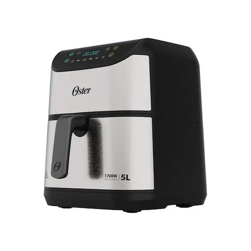Painel Digital Touch com funções pré-programadas, alta capacidade de 5 litros, timer de 60 min e controle de temperatura de 80°C a 200°C, design em aço inox.Porta-fio