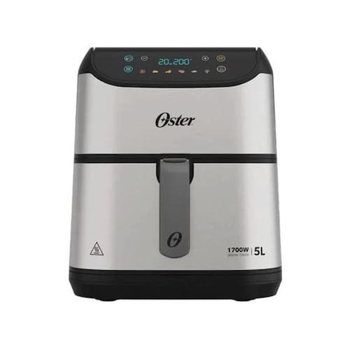 Painel digital colorido com funções pré-programadas, design em aço inox, alta capacidade de 5 litros, controle de temperatura de 80°C a 200°C, timer de 60 minutos e potência de 1700W.Porta-fio