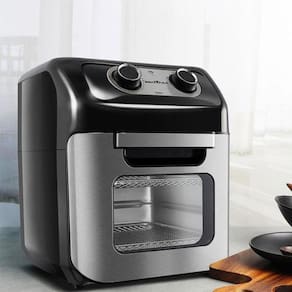 Fritadeira elétrica 3 em 1 (frita sem óleo, assa e reaquece), tecnologia Air Flow para circulação de ar 360°, controle de temperatura ajustável de 80 a 200°C, timer de 60 minutos com desligamento automático e aviso sonoro, revestimento antiaderente, base antiderrapante, acabamento externo em aço inox, proteção contra superaquecimento, luz indicadora de funcionamento e luz interna.Porta-fio