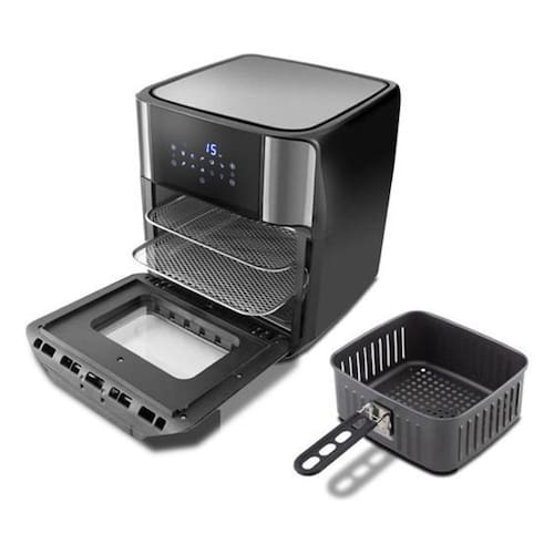 Fritadeira elétrica 2 em 1 (frita e assa), painel digital com 9 funções pré-definidas, função desidratar, timer de 90 minutos com desligamento automático, controle de temperatura ajustável de 80 a 200°C, acabamento externo em inox, acabamento interno em aço com tratamento contra oxidação, luz interna, proteção contra superaquecimento.Porta-fio