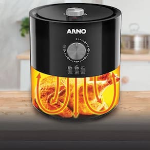 O sistema "Hot Air" da Arno, tecnologia de circulação de ar dentro do aparelho garante muita crocância mesmo sem uso de óleo e resultados mais homogêneos. Outra grande vantagem é a sua super capacidade de 4,2 Litros que servem até 6 Pessoas.