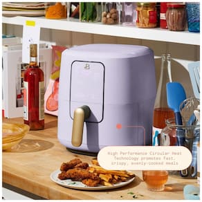 Tecnologia TurboCrisp para cozimento uniforme, 4 programas pré-definidos (Air Fry, Bake, Roast, Reheat), painel digital touch, timer com desligamento automático de até 60 minutos, cesto e bandeja removíveis e compatíveis com lava-louças, revestimento antiaderente livre de PFOA e PFOS.Porta-fio