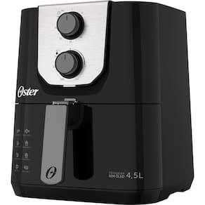 Fritadeira Elétrica Sem Óleo Oster Black Perform 4,5L OFRT510 220VApresento a Fritadeira Elétrica Sem Óleo Oster Black Perform 4,5L OFRT510, uma solução moderna e eficiente para preparar alimentos de forma saudável e saborosa. Com uma capacidade generosa de 4,5 litros, esta fritadeira é perfeita para atender às necessidades de famílias e reuniões, sem comprometer o sabor ou a qualidade dos pratos.Sua tecnologia sem óleo permite cozinhar de maneira mais saudável, reduzindo significativamente a quantidade de gordura utilizada nas preparações, enquanto ainda mantém o sabor e a textura dos alimentos. Com uma potência de 1500W, garante um aquecimento rápido e uniforme, proporcionando resultados consistentes em cada uso.Com um timer de 60 minutos e ajuste de temperatura variando entre 80°C e 200°C, você tem controle total sobre o processo de cozimento, podendo adaptá-lo de acordo com cada receita. Além disso, o cesto removível com abertura lateral facilita o manuseio dos alimentos, tornando a limpeza rápida e conveniente.Se você busca uma maneira prática e saudável de preparar suas refeições favoritas, a Fritadeira Elétrica Sem Óleo Oster Black Perform 4,5L OFRT510 é a escolha ideal para trazer mais versatilidade e praticidade para sua cozinha.Especificações Técnicas:Marca: Oster Modelo: OFRT510Voltagem: 220VTipo: Sem ÓleoCapacidade: 4,5LPotência: 1500WConsumo: 1,5 kWhTimer: 60minCesto: Removível com abertura lateralAjuste de Temperatura: entre 80C e 200CDimensões do Produto: 27,2 L x 32 A x 33,1 P cmDimensões do Produto Embalado: 37,2 L x 36,1 A x 31,7 P cmPeso: 4,16 KgPeso Embalado: 4,56Garantia: 12 meses