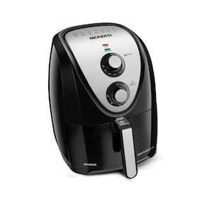 - Marca: Mondial - Voltagem: 220V - Modelo: AFN-50-BI - Cor: Preto/Inox - Potência: 1900W - Funcionamento: Sem óleo - Capacidade: 5L - Acompanha Livro de Receitas: Sim - Dimensões do produto (LxAxP): 36 x 35,5 x 36 cm - Dimensões do embalado (LxAxP): 74,5 x 38,5 x 37,5 cm - Peso: 4,85 kg - Garantia: 12 meses