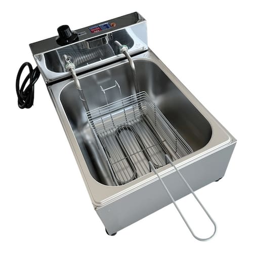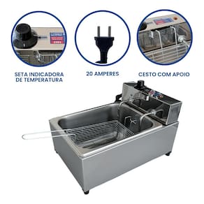 Capacidade Total da Cuba: 7 Litros (incluindo alimentos e óleo) Capacidade de Óleo: de 3,5 a 4 Litros Termostato Ajustável: de 50°C a 300°C, com controle preciso Cabeçote com resistência blindada removível, facilitando a limpeza Cesto de fritura aramado estanhado, para uma fritura uniforme Alça funcional, projetada para escorrimento eficiente do óleo Base e cuba em aço inox, garantindo resistência, durabilidade e segurança