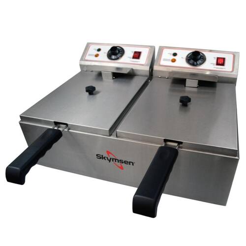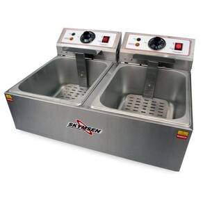 A Fritadeira Elétrica é equipada com duas cubas com capacidade individual para até 5 litros de óleo. Seu tanque é confeccionado em aço inoxidável, proporcionando uma limpeza simples e possui capacidade para 10 litros de óleo. Desenvolvida em conformidade com as especificações do Inmetro, a Fritadeira dispõe de um eficiente sistema de segurança que entra em funcionamento caso o termostato principal deixe de operar, impedindo o superaquecimento e combustão do óleo. O modelo possui um cesto robusto confeccionado com arame estanhado com pega mão em plástico ergonomicamente projetado. Além disso, conta com um prático sistema de escorredor faz com que o excesso de óleo retorne ao tanque de fritura. O sensor de temperatura do modelo entra em contato direto com o óleo, o que proporciona maior confiabilidade na leitura da temperatura e maior velocidade na retomada da mesma. Além disso, o termostato de segurança atua em caso de não funcionamento do termostato principal, impedindo o superaquecimento do óleo, evitando que o mesmo se inflame. A Fritadeira proporciona rápida recuperação de temperatura, essencial para frituras com qualidade. Esse modelo é o equipamento ideal para diversos estabelecimentos como: restaurantes, supermercados, bares, cantinas, hospitais e padarias que necessitem de alta potência para fritar alimentos.