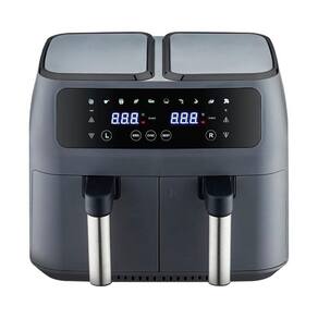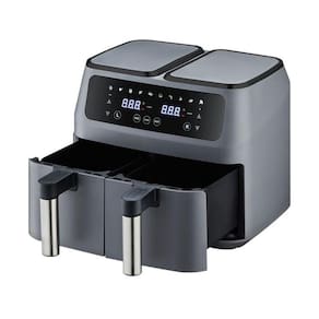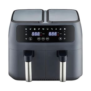 A fritadeira Dual Air Fryer possui 8 litros Labravia prepara ao mesmo tempo 2 alimentos. O alimento é preparado de maneira rápida, usando os dois cestos de uma vez, os alimentos ficam prontos ao mesmo tempo.