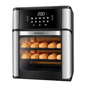 Fritadeira Mondial Air Fryer Oven 12 Litros, combina fritadeira sem óleo e forno, permite cozinhar, assar, grelhar e tostar. Tecnologia de circulação de ar quente, painel digital com 10 funções predefinidas.Desligamento automático