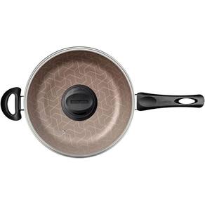 Antes do Uso: Lave com esponja macia, sabão neutro ou detergente líquido. Depois de secar, unte a área interna com óleo ou gordura e leve ao fogo por um ou dois minutos. Deixe esfriar e lave novamente. Seu utensílio Starflon está pronto para uso com ou sem gordura, sempre em fogo baixo ou médio (nunca superior a 260 C). Para mexer os alimentos use somente utensílios de silicone, nylon ou madeira. Com o uso, o cabo, a alça e o pegador podem afrouxar devido à dilatação normal dos materiais. Reaperte apenas o suficiente, sem forçar. Limpeza: Evite a imersão do utensílio quente em água fria. Nunca utilize produtos abrasivos na lavagem. Se deixar queimar alimentos, umedeça a área e reserve até que possa remover os resíduos grudados com esponja e sabão. Para descarte do produto e embalagem siga as orientações de reciclagem vigentes.