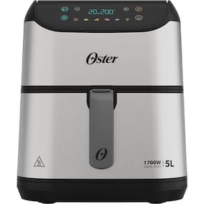 Fritadeira Oster Digital Inox 5L com painel touch, design moderno em aço inox, grelha Easy Clean com revestimento antiaderente, potência de 1700W.Porta-fio