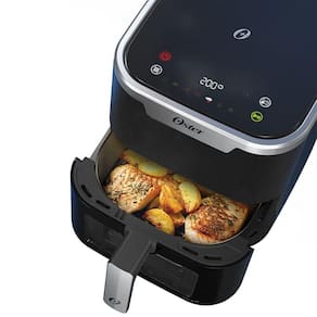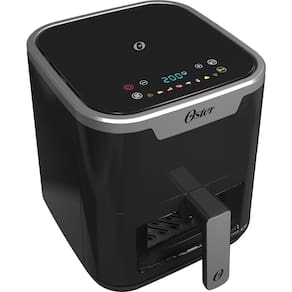 Fritadeira Oster Digital Touch com visor transparente, painel touch colorido com 8 funções pré-programadas, 1500W de potência e capacidade de 4,5 litros.Porta-fio