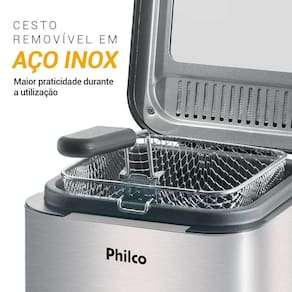 A Fritadeira Philco Deep Fry Inox 1,8L oferece 900W de potência, além de compacta, ideal para preparar diversos tipos de alimentos fritos!