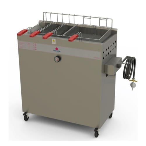 Estrutura em aço inox escovado e cuba interna em aço inox;