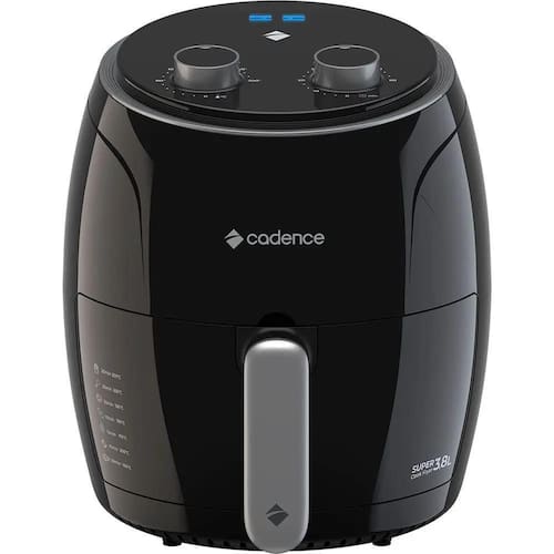 Inovadora no design, surpreendente na capacidadeA vida na cozinha ficou ainda mais simples, com a Fritadeira sem Óleo Cadence Super Cook Fryer FRT410. Design compacto, mas de grande capacidade, prepara 3,8L com até 1300W de potência. Com grelha, timer 60min e seletor de temperatura de 80 a 200C, é ideal para carnes, empanados, minibolos, legumes e o que mais sua imaginação permitir.- 1300WPotência e agilidade no preparo- 3,8 LDe capacidade- Timer ajustávelAté 60 min- Seletor de temperaturaDe 80ºC A 200ºCDica de uso: Somente na primeira vez que usar, unte o interior do cesto com óleo e aqueça por 3 minutos. Isto vai ajudar na durabilidade do revestimento do antiaderente.Garantia de 12 mesesSelo de Segurança OCP SGSFritadeira Sem Óleo 3,8L Cadence Super Cook FryerInovadora no design, surpreendente na capacidadeA vida na cozinha ficou ainda mais simples, com a Fritadeira sem Óleo Cadence Super Cook Fryer FRT410.Design compacto, mas de grande capacidade, prepara 3,8L com até 1300W de potência.Com grelha, timer 60min e seletor de temperatura de 80 a 200C, é ideal para carnes, empanados, minibolos, legumes e o que mais sua imaginação permitir.- 1300W Potência e agilidade no preparo- 3,8 L de capacidade- Timer ajustável Até 60 min- Seletor de temperatura De 80oC A 200oCDica de uso: Somente na primeira vez que usar, unte o interior do cesto com óleo e aqueça por 3 minutos. Isto vai ajudar na durabilidade do revestimento do antiaderente.Garantia de 12 mesesSelo de Segurança OCP SGSModelo: FRT410-127tensãoVoltagem: 127VCódigo produto: FRT410Potência: 1300WConsumo: 1,3KW/HDimensões lxaxp: 280x305x250mmPeso: 3,25KgDescrição do produto Compacta e com grande capacidade de 3.8L. Também conta com grelha removível, para facilitar ainda mais a limpeza. Alta performance, com 1300W de potência. Timer ajustável de 60 minutos, com seletor de temperatura, sendo de 80ºC a 200ºC.