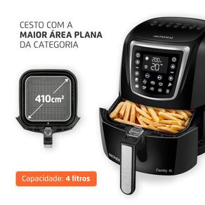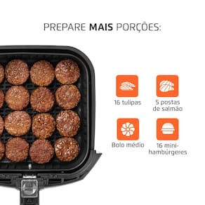 CAPACIDADE DE 4 LITROS + CESTO QUADRADO: O formato do cesto acomoda melhor os alimentos, permitindo assar por igual. Além disso, proporciona maior aproveitamento do espaço do cesto.